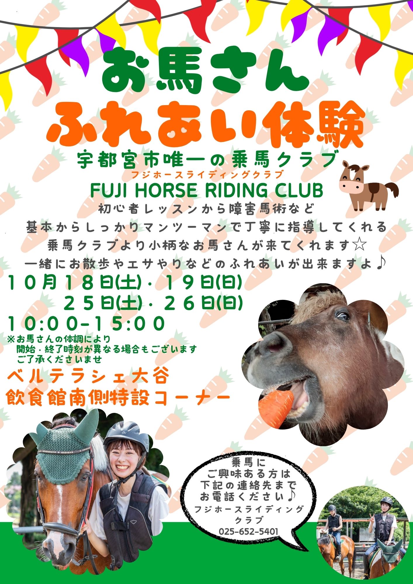 宇都宮市唯一の乗馬クラブのフジホースライディングクラブから、お子様にも大人気のお馬さんがベルテラシェ大谷に♪
