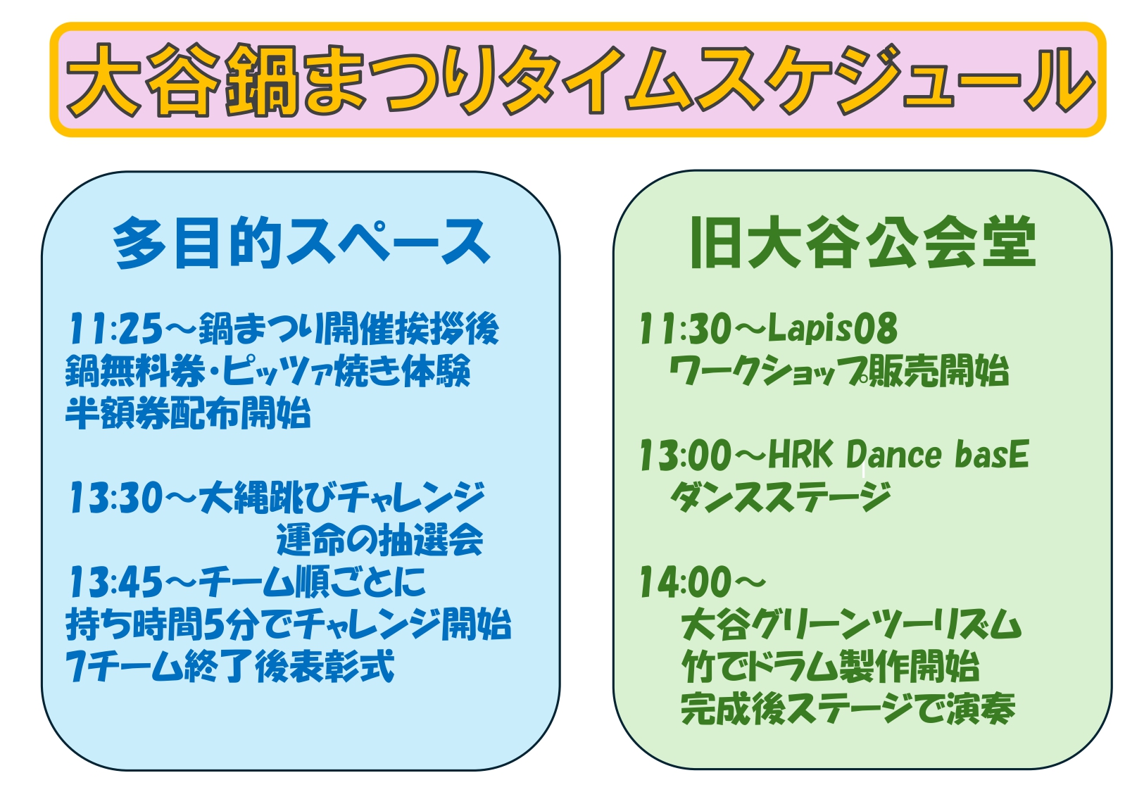 ぜひお誘いあわせの上、大谷鍋まつりにお越しくださいませ