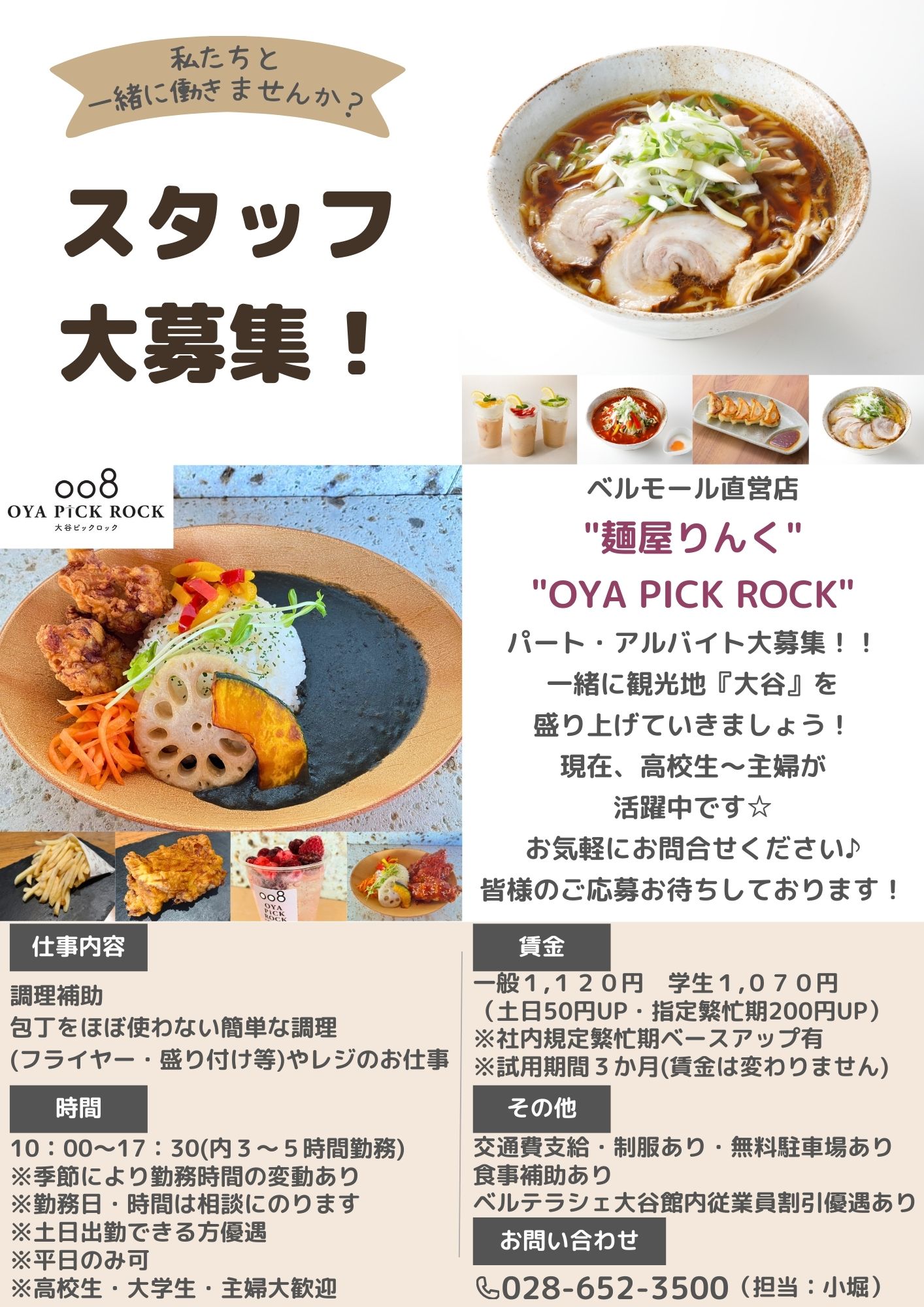『麺屋りんく』『OYA PICK ROCK』スタッフ大募集!!