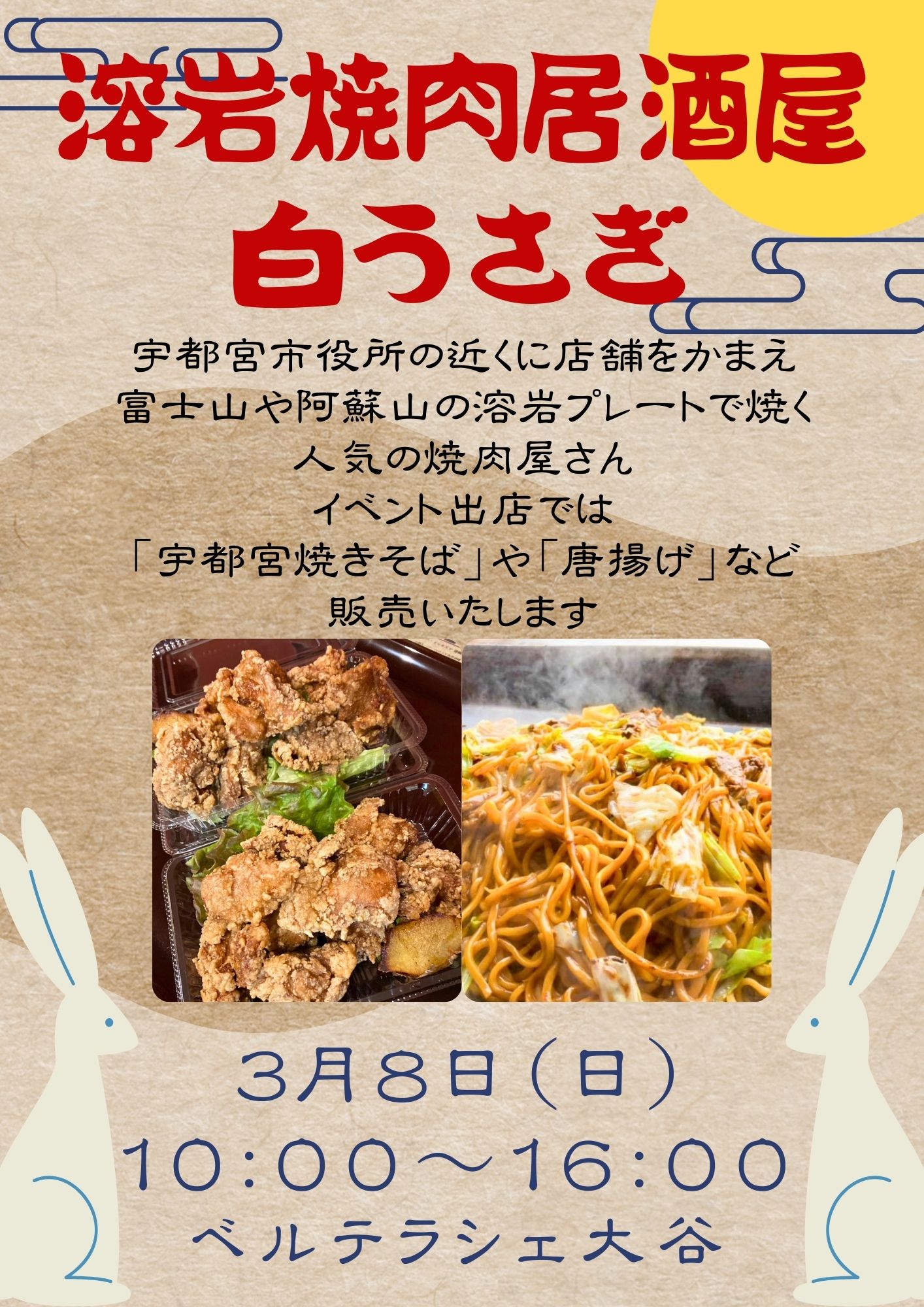 栃木県ならではの太麺でもちもちの牛すじ入り『宇都宮焼きそば』や居酒屋さんの『唐揚げ』などを販売♪