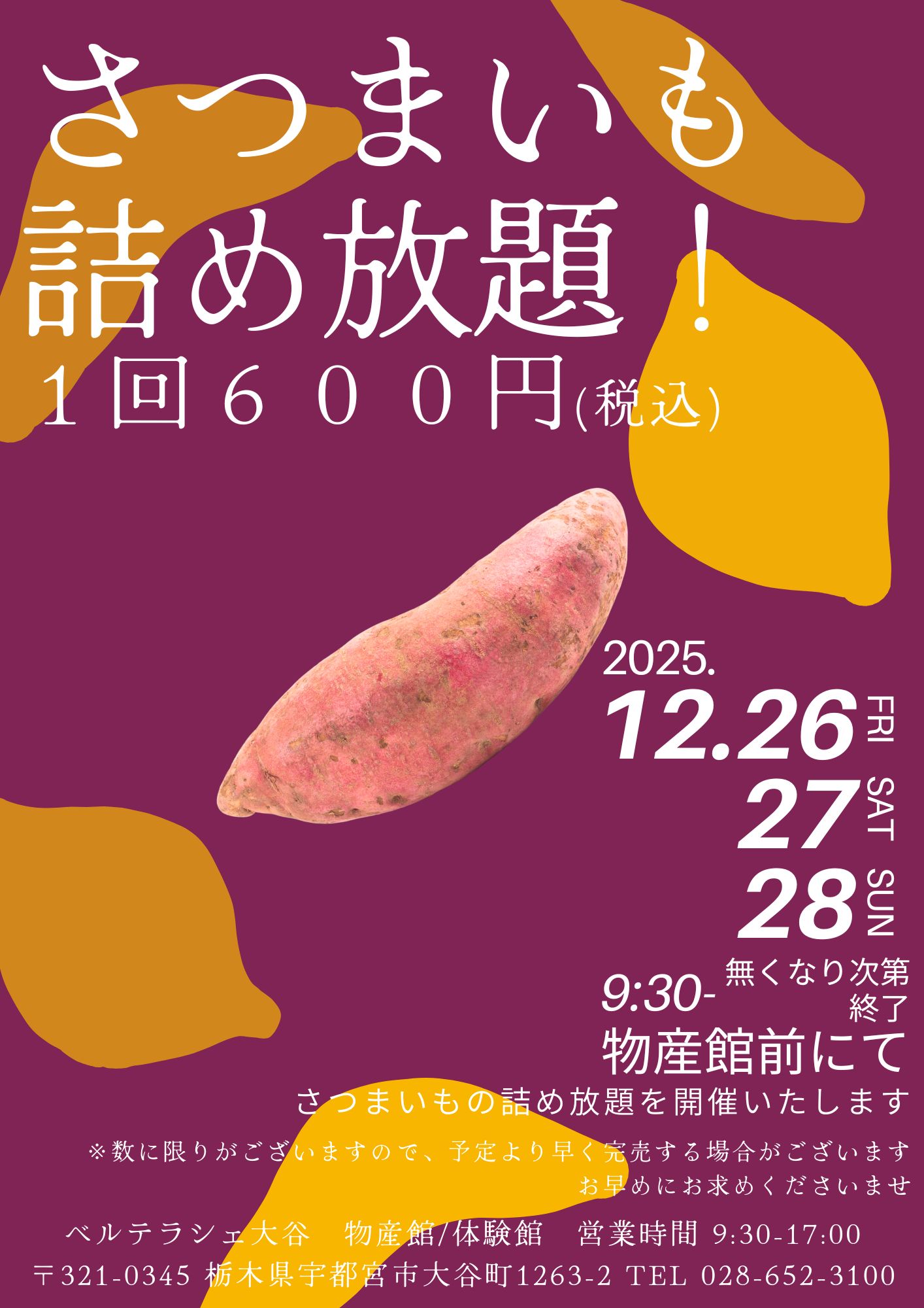 近隣のさつまいも農家さんが丹精込めて育てた、さつまいもの詰め放題を開催します。